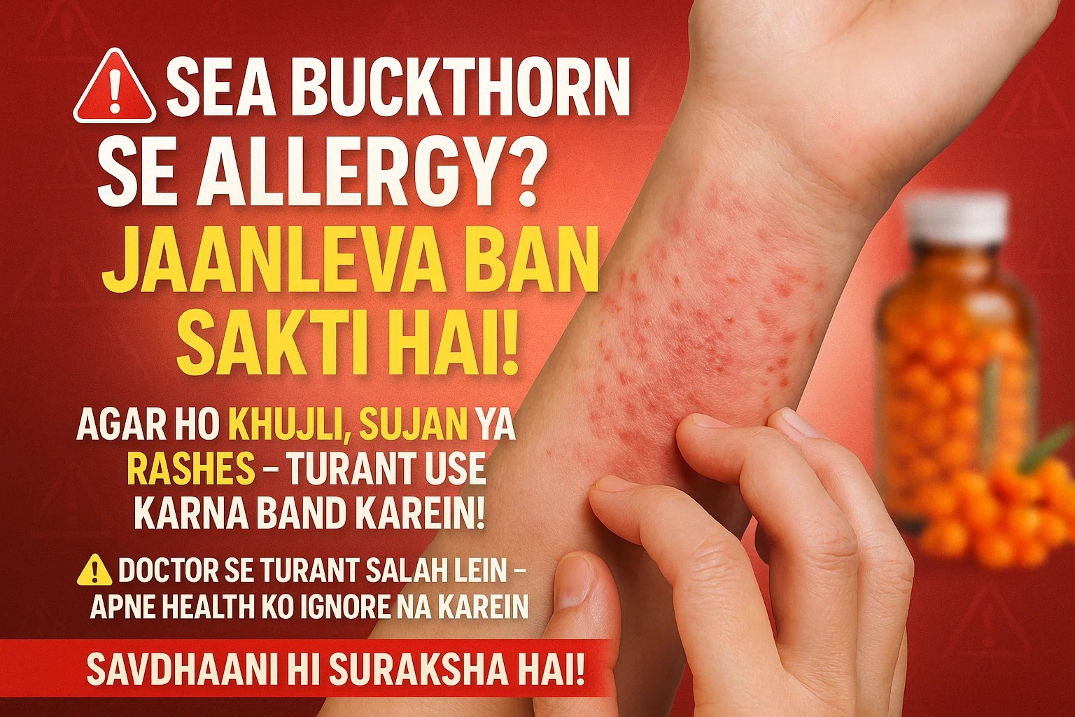 Sea Buckthorn या इससे जुड़े पौधों से एलर्जी हो सकती है। अगर खुजली, सूजन या रैश दिखे, तुरंत देना बंद करें और डॉक्टर से संपर्क करें