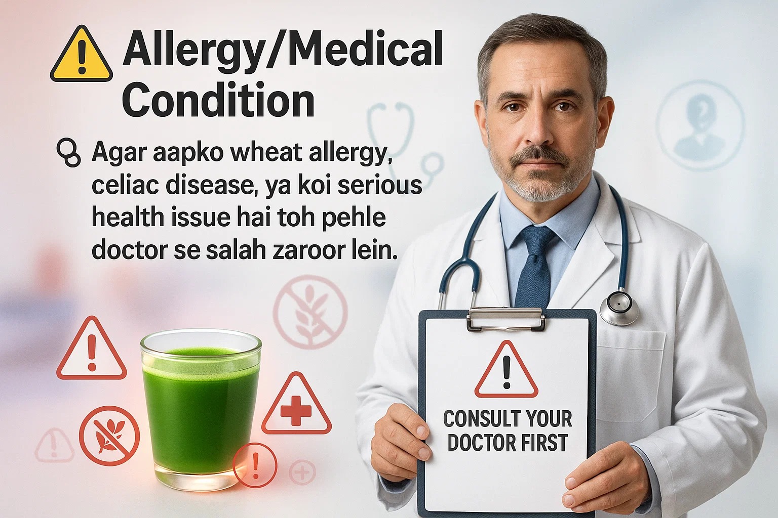 Wheatgrass ko hamesha moderate matra mein hi lein. Regular use se aapko detox, immunity, aur energy ke benefits milenge, lekin overdose se bachein. Apni health needs ke hisaab se dose adjust karein aur kisi bhi unusual symptom par doctor se salah lein!
