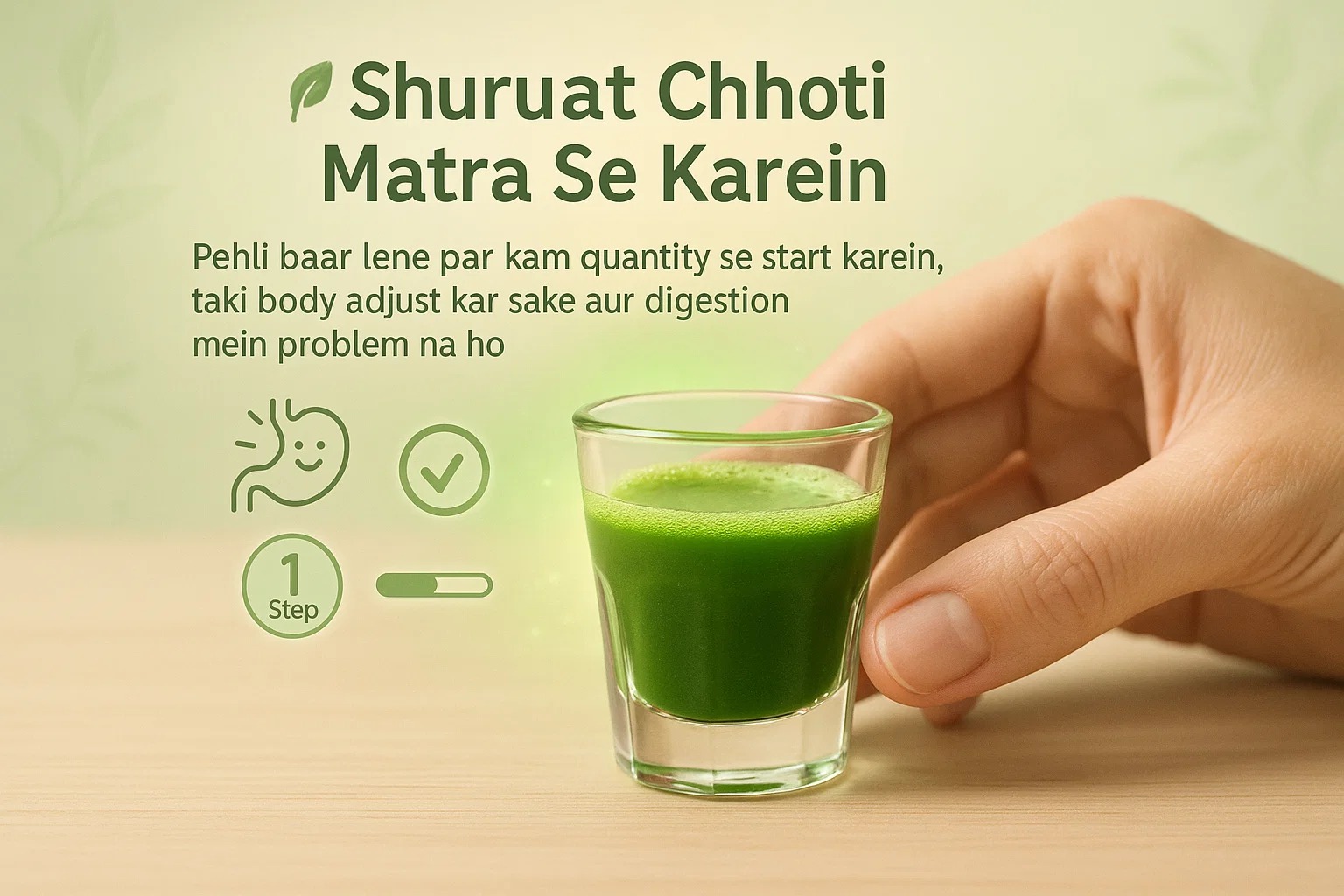 A1: Rozana 30-50 ml wheatgrass juice lena safe hai. Beginners 20-30 ml se shuru karein
